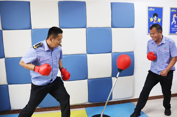 儀式最后,所有參會(huì)人員來(lái)到“員工心理服務(wù)中心”和“舒心驛站”進(jìn)行參觀體驗(yàn)。有的員工在心理服務(wù)中心的沙盤(pán)區(qū)域通過(guò)游戲的方式,自由的表達(dá)自我,實(shí)現(xiàn)情緒釋放與創(chuàng)傷愈合的效果。有的員工則來(lái)到舒心驛站,通過(guò)室內(nèi)配備的健身器械、拳擊沙袋及宣泄墻等運(yùn)動(dòng)型宣泄器材有效釋放工作期間的負(fù)能量。
